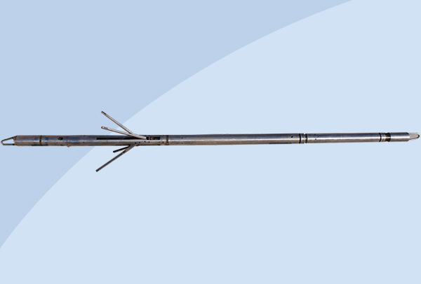 液壓推靠器配接能譜密度與微球復合探頭,使其貼靠井壁以滿足測…